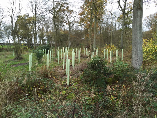 The woodland working parties that ran through November helped plant some of the 400 new trees, required works after felling as part of our Forestry Commission management plan. A mixture of Cherry, Oak, Hornbeam, Hazel and small-leaved Lime were planted, tubed and staked.